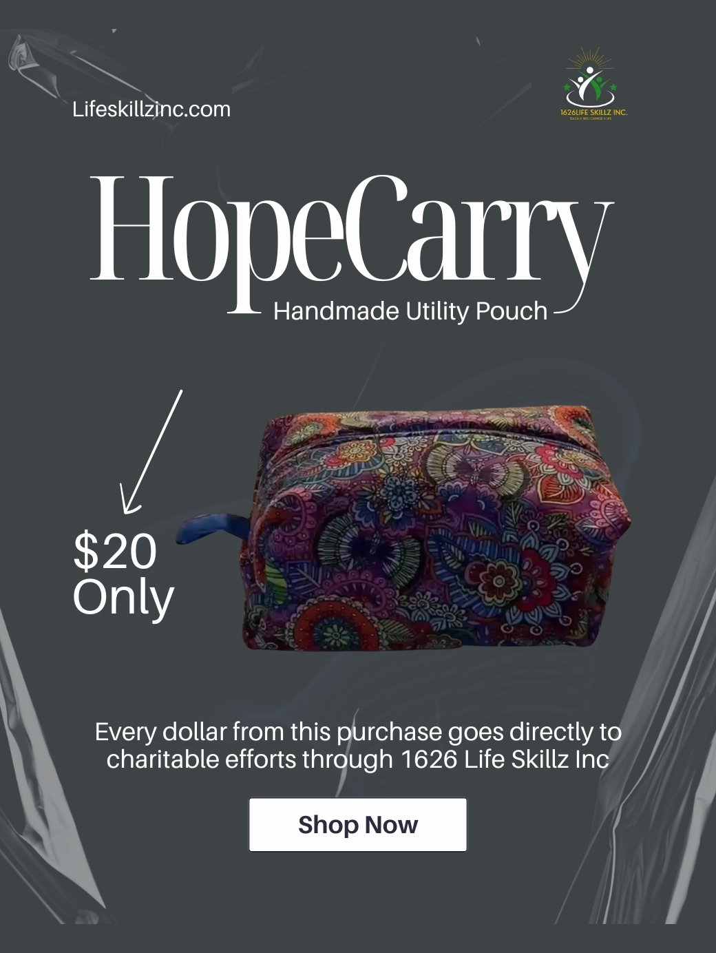 Every dollar from this purchase goes directly to charitable efforts through 1626 Life Skillz Inc, supporting individuals and families in need through education, skill-building, and community assistance.