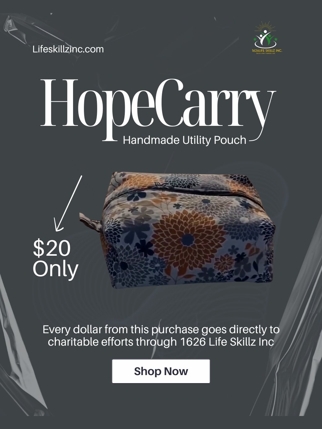 Every dollar from this purchase goes directly to charitable efforts through 1626 Life Skillz Inc, supporting individuals and families in need through education, skill-building, and community assistance.